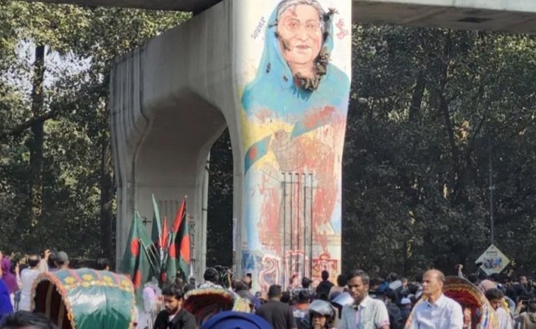 গত ৫ই আগস্ট শেখ হাসিনার পতনের পর মেট্রোরেলে পিলারে আঁকা ছবিতে জুতা, ইটপাটকেল ও ঝাড়ু মেরে নিজেদের ক্ষোভ প্রকাশ করে বিক্ষুব্ধ মানুষ। মেট্রোরেলে শেখ হাসিনার ছবি সম্বলিত পিলারটিকে ‘ঘৃণাস্তম্ভ’ নাম দেওয়া হয়।
