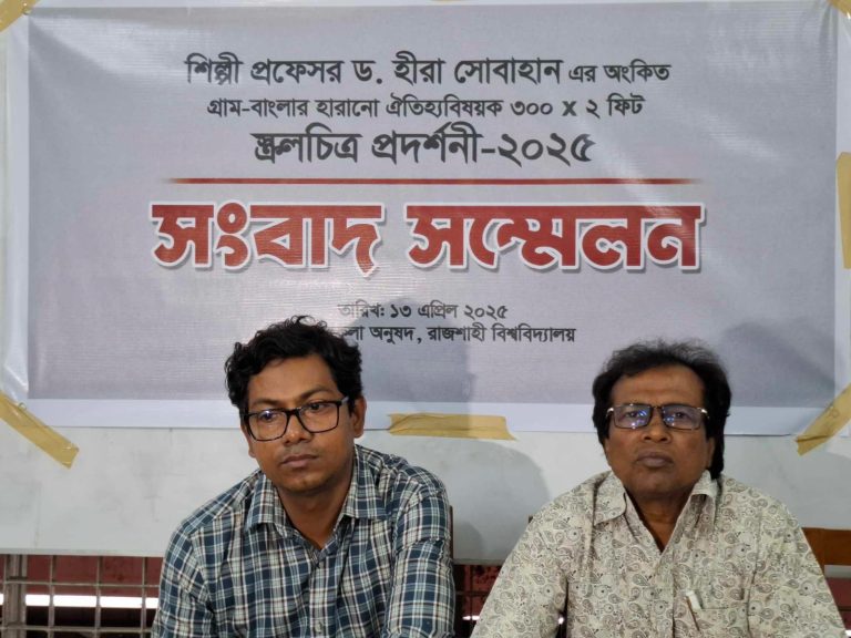 রাবি প্রতিনিধি: পহেলা বৈশাখ উপলক্ষে গ্রাম-বাংলার হারানো ঐতিহ্য নিয়ে একক স্ক্রলচিত্র প্রদর্শনীর আয়োজন করেছে রাজশাহী বিশ্ববিদ্যালয়ের চিত্রকলা, প্রাচ্যকলা ও ছাপচিত্র বিভাগের অধ্যাপক ড. আবদুস সোবাহান (হীরা সোবাহান)। সোমবার (১৪ এপ্রিল) সকাল সাড়ে ৯টা থেকে বিশ্ববিদ্যালয়ের চারুকলা প্রাঙ্গণে ৩০০ ফুট দৈর্ঘ্য ও ২ ফুট প্রস্থের এই শিল্পকর্মটি প্রদর্শিত হবে। দিনব্যাপী এই প্রদর্শনীর উদ্বোধন করবেন বিশ্ববিদ্যালয়ের উপাচার্য অধ্যাপক ড. সালেহ্ হাসান নকীব।