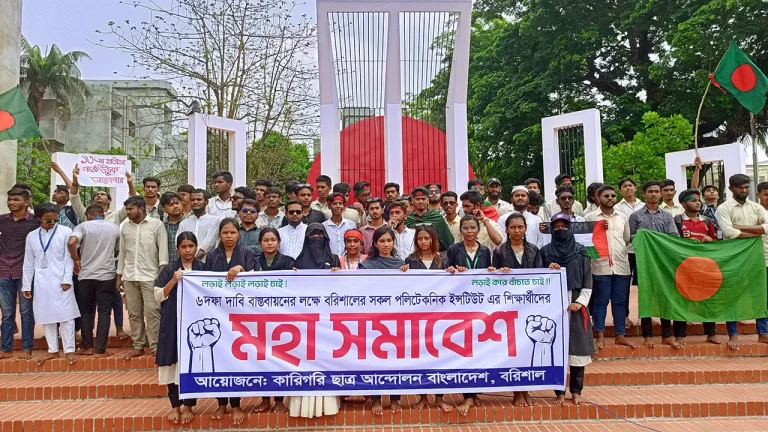 ২০২১ সালে নিয়োগপ্রাপ্ত ক্রাফটদের মামলার রায়ের প্রতিবাদসহ ৬ দফা দাবিতে বরিশালে মহাসমাবেশ করেছেন পলিটেকনিক কলেজের শিক্ষার্থীরা।