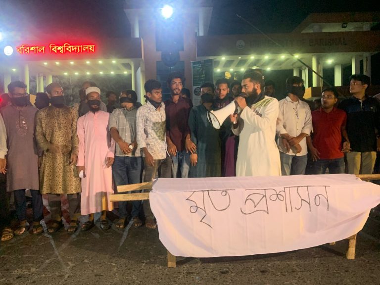 এবিষয়ে আন্দোলনরত শিক্ষার্থী নাজমুল ঢালি বলেন, বরিশাল বিশ্ববিদ্যালয়ের সাধারণ শিক্ষার্থীদের ৪ দফা যৌক্তিক দাবি প্রশাসনকে জানালে, তারা এখন অবধি কোনো পদক্ষেপ নেয়নি বরঞ্চ সৈরাচার ভিসি এই আন্দোলনকে দমানোর জন্য ২২ জন শিক্ষার্থীর নামে জিডি করে যা সম্পূর্ণ ভিত্তিহীন এবং সৈরাচারি মনোভাবের বহিঃপ্রকাশ আমরা এই সৈরাচারি মনোভাবের বিরুদ্ধে এবং প্রশাসনের নিস্তব্ধতার কারণে আজকের এই কফিন মিছিল আয়োজন করেছি”