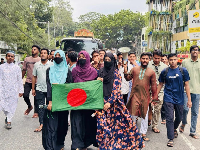 মিছিলে অংশগ্রহণকারীরা হাতে প্ল্যাকার্ড নিয়ে স্লোগান দিতে থাকেন- “খুন, চাঁদাবাজি আর নয়!” “সকল হত্যাকাণ্ডের বিচার চাই!” “বর্বরতার বিরুদ্ধে ছাত্রসমাজ ঐক্যবদ্ধ!”