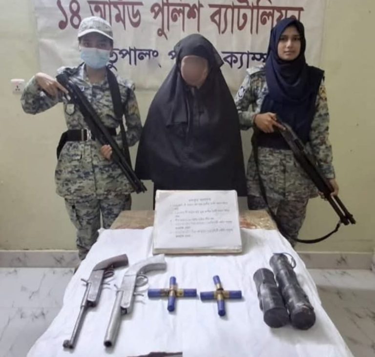 গত ০৫/০৮/২০২৫ খ্রিঃ বিকাল ৫ ঘটিকার সময় ইন্টেলিজেন্স তথ্যের ভিত্তিতে জনাব মোহাম্মদ সিরাজ আমীন, অধিনায়ক অতিরিক্ত ডিআইজি ১৪-এপিবিএন উখিয়া কক্সবাজার মহোদয়ের দিক-নির্দেশনায় অপস্ এন্ড ইন্টেলিজেন্স শাখার ইনচার্জ পুলিশ পরিদর্শক (শহর ও যানবাহন) জনাব শুভেন্দু কুমার মুনসী এর তত্তাবধানে কুতুপালং পুলিশ ক্যাম্পের অপারেশন অফিসার পুলিশ পরিদর্শক (নিঃ) জনাব ঠাকুর দাশ মন্ডল এর নেতৃত্বে এবং বালুরমাঠ ক্যাম্প পুলিশের অস্ত্র বিরোধী যৌথ অভিযান পরিচালনা করে কুতুপালং রেজিস্টার্ড ক্যাম্পের ই ব্লকে বসবাসরত রোহিঙ্গা নারী শ্রাবণী @ সাবু (৪০), পিতা : রশিদ, স্বামী : এহসানুল হক , এমআরসি নং : ৬১০৪২-A, ব্লক : ই , শেড নং – ২৬, রুম নং -০৬, থানা-উখিয়া, জেলা-কক্সবাজার এর বসত শেড হতে ০২ টি ওয়ান শুটার গান, ০৮ রাউন্ড কার্তুজ এবং ৫ টি ককটেল বোমা সাদৃশ্য বস্তুসহ গ্রেফতার করে কুতুপালং পুলিশ ক্যাম্প হেফাজতে নিয়ে আসা হয়