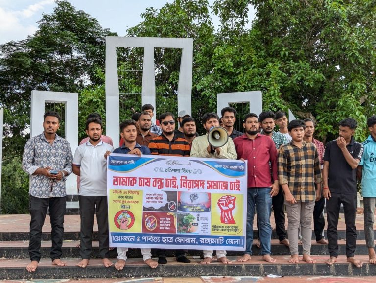 এসময় বক্তারা অবিলম্বে পার্বত্য চট্টগ্রামে তামাক চাষ বন্ধে আইন প্রণয়ন ও তা কার্যকর করার দাবি জানান। অন্যথায় কঠোর আন্দোলনের কর্মসূচি ঘোষণা করার হুঁশিয়ারি দেন তারা।