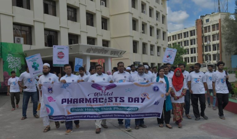 নোবিপ্রবি প্রতিনিধি: নোয়াখালী বিজ্ঞান ও প্রযুক্তি বিশ্ববিদ্যালয়ে (নোবিপ্রবি) ওয়ার্ল্ড ফার্মাসিস্ট ডে ২০২৫ পালিত হয়েছে। আজ বৃহস্পতিবার (২৫ সেপ্টেম্বর ২০২৫) বিশ্ববিদ্যালয়ের ফার্মেসি বিভাগের আয়োজনে ‘থিংক হেল্থ, থিংক ফার্মাসিস্ট’ প্রতিপাদ্যকে সামনে রেখে দিবসটি পালিত হয়। দিবস উপলক্ষ্যে আয়োজিত অনুষ্ঠানমালার মধ্যে ছিলো বর্ণাঢ্য র্যালি, কেক কাটা এবং সংক্ষিপ্ত আলোচনা। এতে প্রধান অতিথি হিসেবে উপস্থিত ছিলেন বিশ্ববিদ্যালয়ের উপাচার্য অধ্যাপক ড. মুহাম্মদ ইসমাইল।