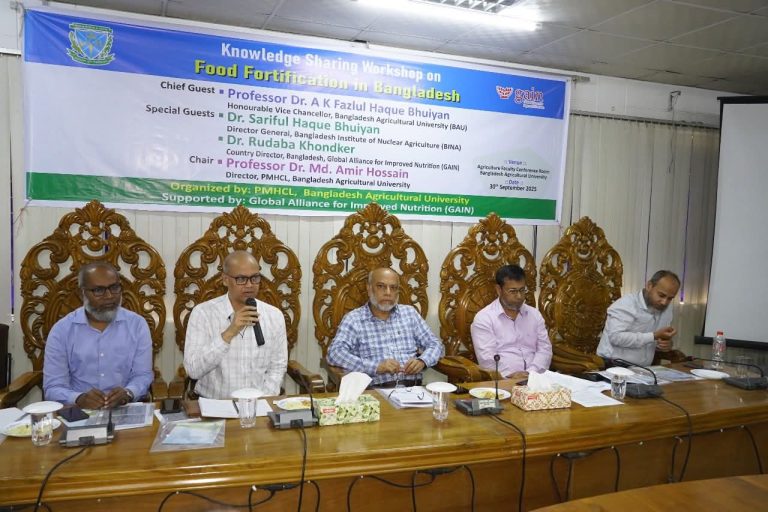 মঙ্গলবার (৩০ সেপ্টেম্বর) বিশ্ববিদ্যালয়ের কৃষি অনুষদীয় কনফারেন্স হলে প্রফেসর মুহাম্মদ হোসেন কেন্দ্রীয় গবেষণাগার (পিএমএইচসিএল) এবং গ্লোবাল অ্যালায়েন্স ফর ইমপ্রুভড নিউট্রিশন (জিএআইএন) এর যৌথ উদ্যোগে ওই কর্মশালাটি অনুষ্ঠিত হয়।
