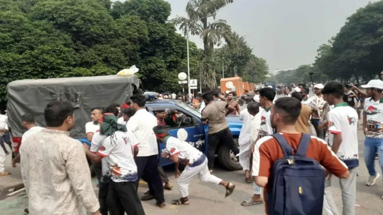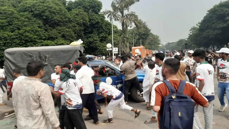 এই ঘটনার পরে বাইরে গিয়ে বিক্ষোভ করেন জুলাইযোদ্ধারা। ভাঙচুর করা হয় কয়েকটি যানবাহন। কয়েকটি যানবাহনে আগুন ধরিয়েও দেওয়া হয়েছে।