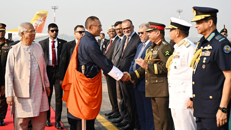অন্তর্বর্তী সরকারের প্রধান উপদেষ্টা অধ্যাপক ড. মুহাম্মদ ইউনূসের আমন্ত্রণে তিন দিনের রাষ্ট্রীয় সফরে ঢাকায় এসে পৌঁছেছেন ভুটানের প্রধানমন্ত্রী শেরিং তোবগে। শনিবার (২২ নভেম্বর) সকাল ৮টা ১৫ মিনিটে তিনি হযরত শাহজালাল আন্তর্জাতিক বিমানবন্দরে অবতরণ করেন।