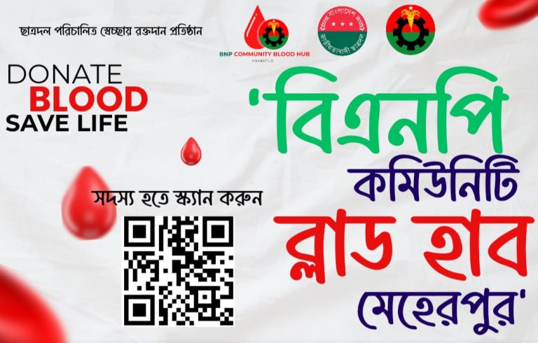 রক্তের প্রয়োজনে পাশে দাঁড়ানোর মানবিক ও জাতীয়তাবাদী উদ্যোগ — “বিএনপি কমিউনিটি ব্লাড হাব – মেহেরপুর”