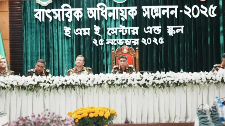 মঙ্গলবার (২৫ নভেম্বর) দুপুরে নীলফামারীর সৈয়দপুর সেনানিবাসের ইএমই সেন্টার অ্যান্ড স্কুলের মেকানিক্যাল ভবনের সম্মেলন কক্ষে ইএমই কোরের বাৎসরিক-২০২৫ অধিনায়ক সম্মেলনে তিনি এ আহ্বান জানান।
