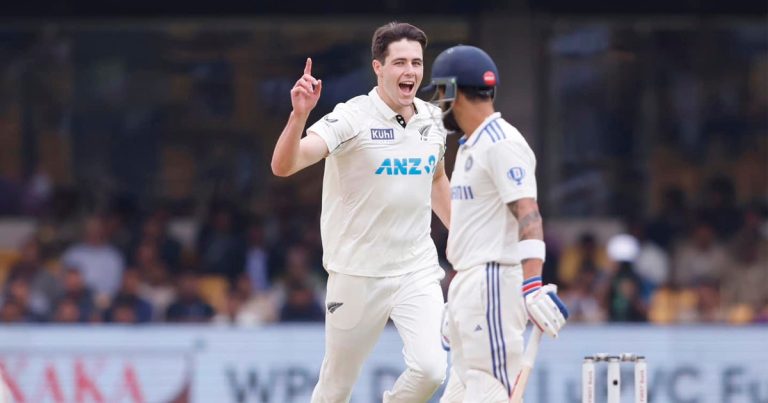 কিউই পেসারদের তোপে ভারতের শুরুটা হয় বিবর্ণ। টিম সাউদির বলে বোল্ড হয়ে ফেরেন রোহিত শর্মা। তার ব্যাট থেকে আসে ২ রান। ভিরাট কোহলি মাঠে নেমে টিকতেও পারেননি। ডাক মেরে সাজঘরে ফেরেন তিনি। একই পথে হাঁটেন সরফরাজ খানও। কিছুক্ষণ থিতু হওয়া ইয়াশাসবি জায়সাওয়ালকে উইলিয়াম। ১৩ রানে ফেরেন তিনি।