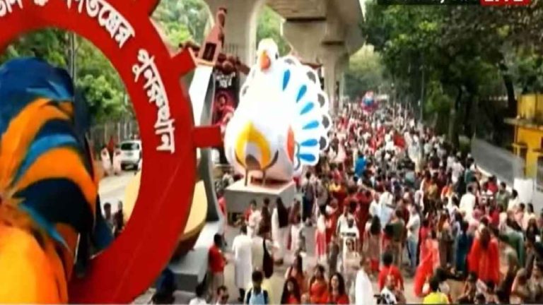 বাংলা নববর্ষকে বরণ ঘিরে ঢাকা বিশ্ববিদ্যালয়ের চারুকলা অনুষদে শেষ হয়েছে ‘বৈশাখী শোভাযাত্রা’র সব প্রস্তুতি। লোকজ ঐতিহ্য ও প্রতীকের মেলবন্ধনে এবার শোভাযাত্রায় থাকছে পাঁচটি বড় মোটিফ-মোরগ, বেহালা, পায়রা, হাতি ও ঘোড়া। আয়োজকদের মতে, শোভাযাত্রার মাধ্যমে তুলে ধরা হবে ঐক্য, মানবিক মূল্যবোধ ও সাংস্কৃতিক চেতনার বার্তা।