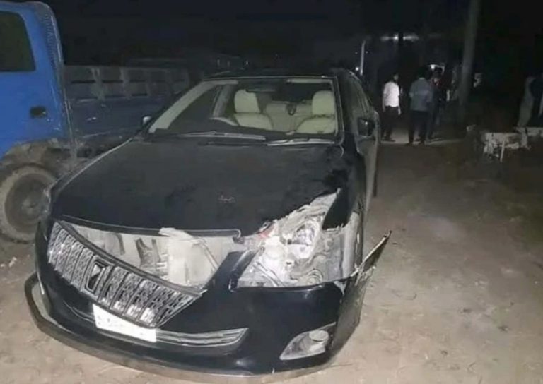 লোহাগাড়া উপজেলার চুনতি ইউনিয়নের হাজী রাস্তার মাথা এলাকায় এই দুর্ঘটনা ঘটে। একটি ট্রাকের ধাক্কায় গাড়ির সামনের অংশ দুমড়ে-মুচড়ে গেছে।