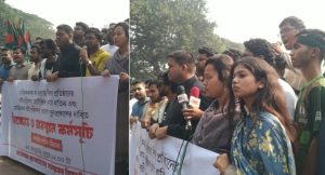 সোহরাওয়ার্দী হলে পুনঃফল প্রকাশের দাবিতে ছাত্রদলের বিক্ষোভ