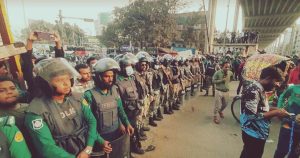 শিক্ষার্থীদের ঘিরে রেখেছে পুলিশ, সামনে আনা হয়েছে জলকামান