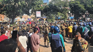 ধানমন্ডি ৩২-এ এক্সক্যাভেটর ঢোকানোর চেষ্টা, পুলিশ বাধা-ধাওয়া